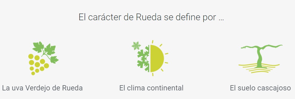 La D.O. Rueda se eleva entre 700 y 800 metros sobre el nivel del mar, con tierras llanas pero altas, que soportan inviernos fríos y muy largos, primaveras cortas con heladas tardías y veranos calurosos y secos, sólo alterados por tormentas. Este factor obliga a las cepas a buscar sus recursos hídricos en lo más hondo del subsuelo, más que en otras zonas de Europa.